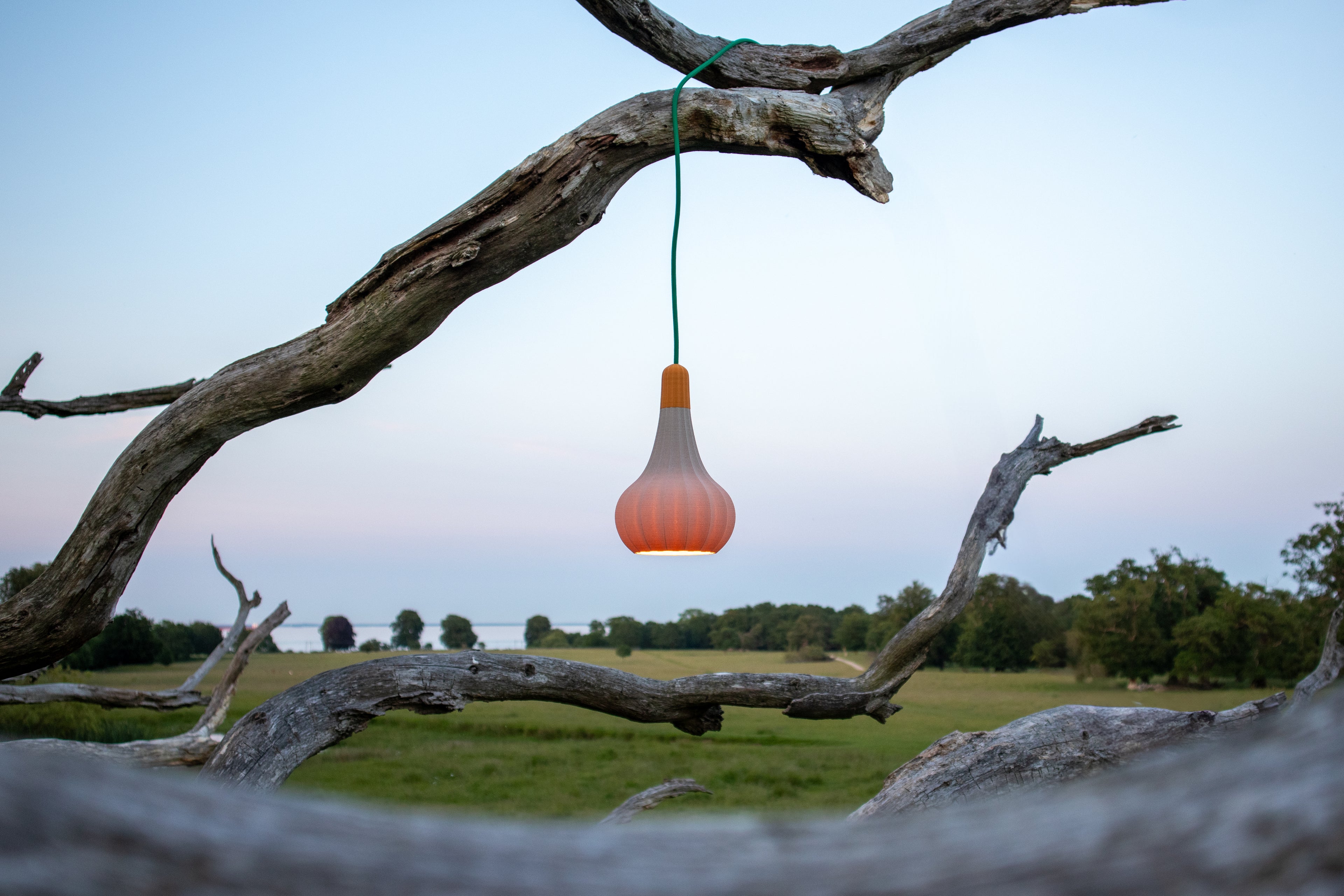 For at gøre lamperne så bæredygtige som muligt, gik jeg på jagt efter de rette materialer – og fandt mit hovedmateriale i et træbaseret PLA-filament produceret i Sverige.