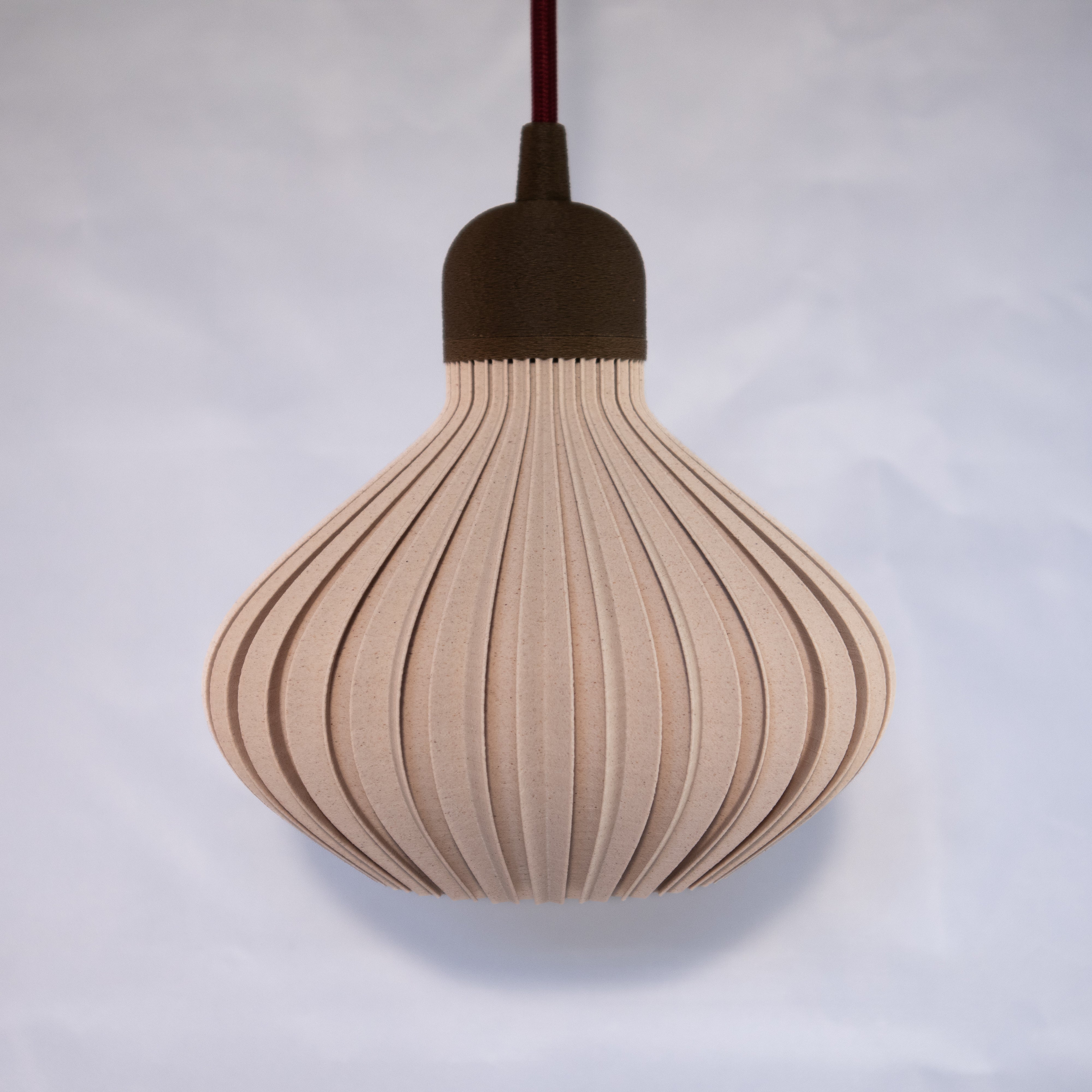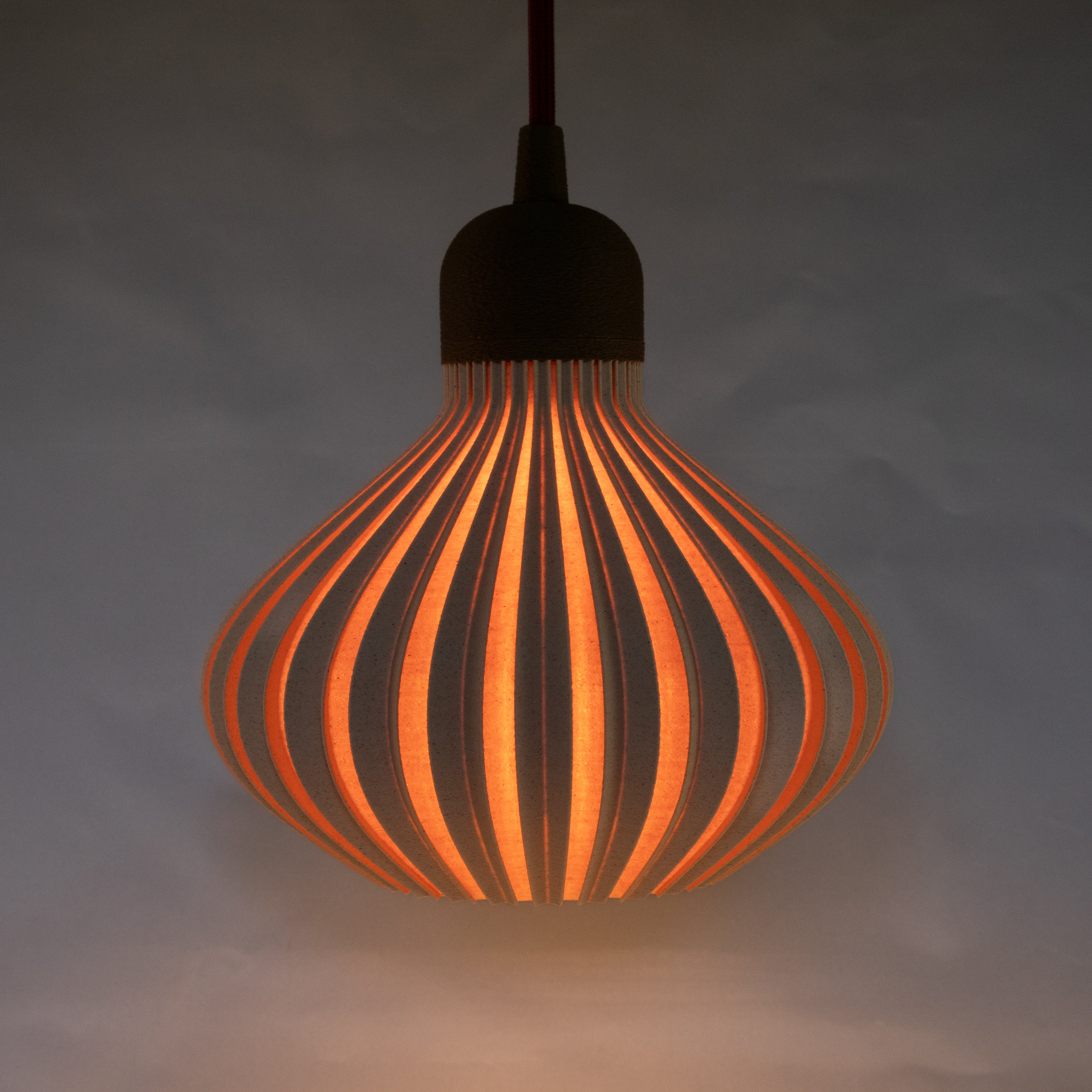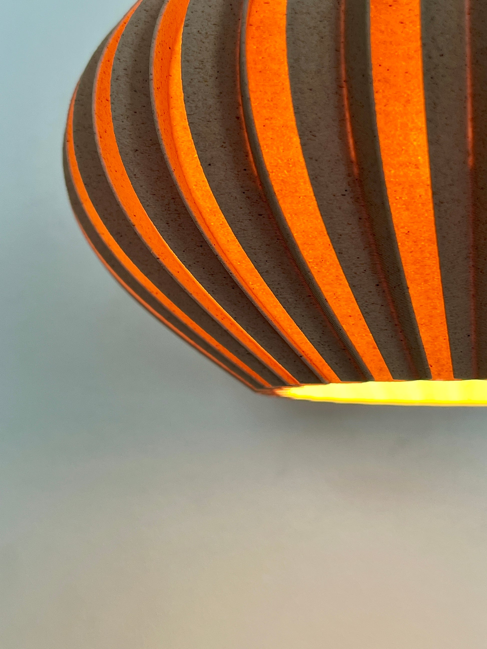 De bløde linjer og varme farvetoner giver lampen et sanseligt udtryk – som en stille bevægelse i rummet.