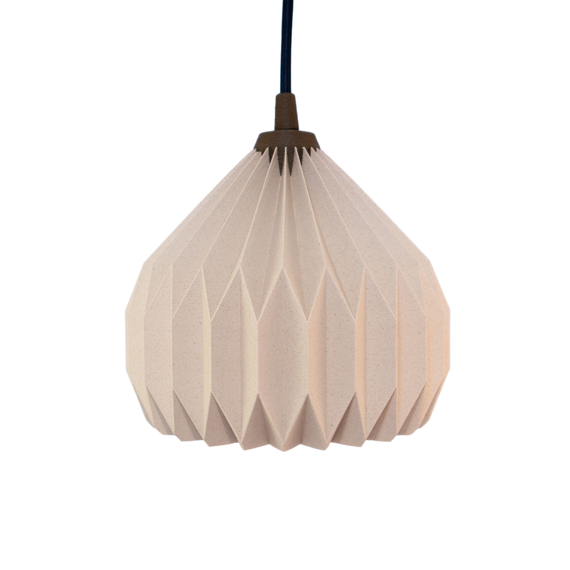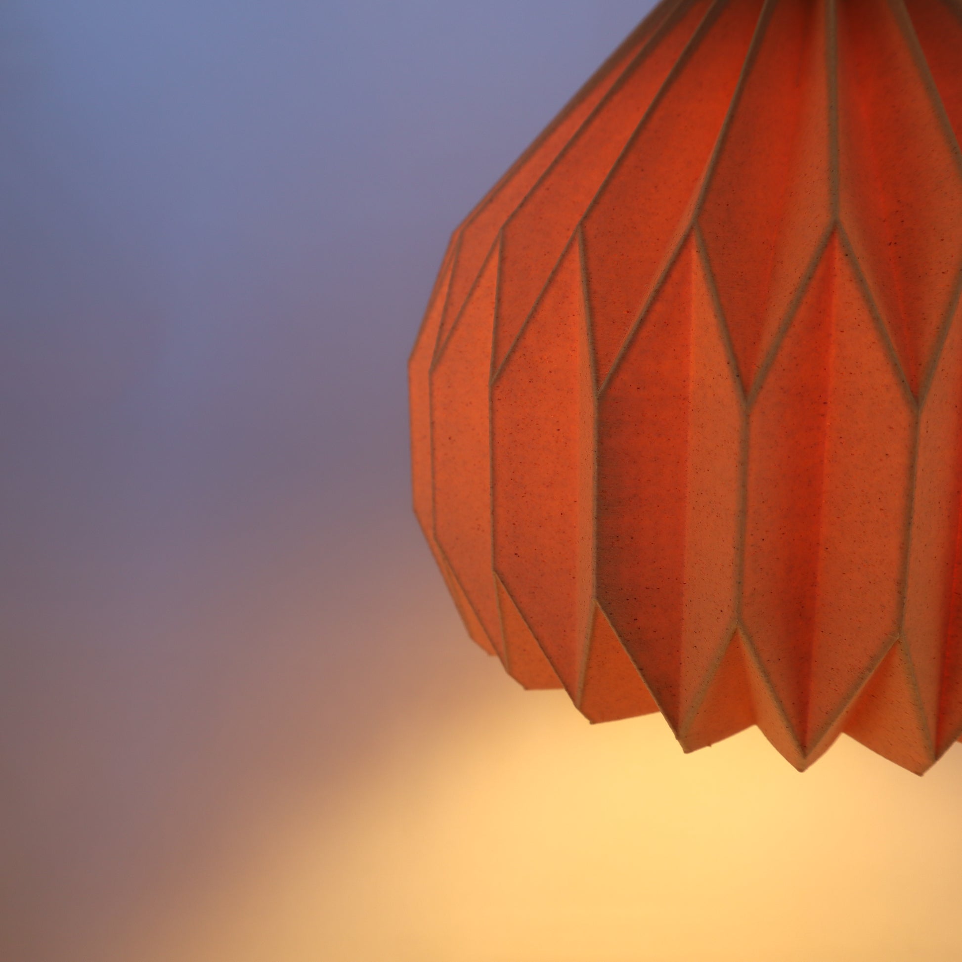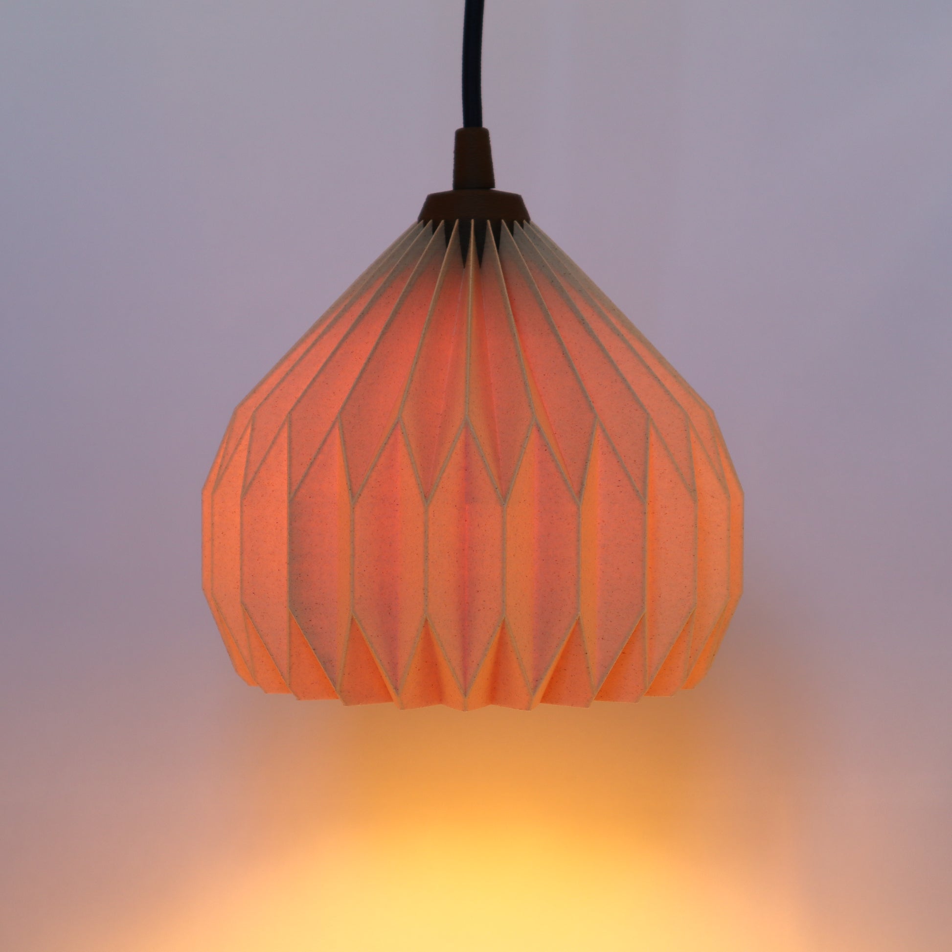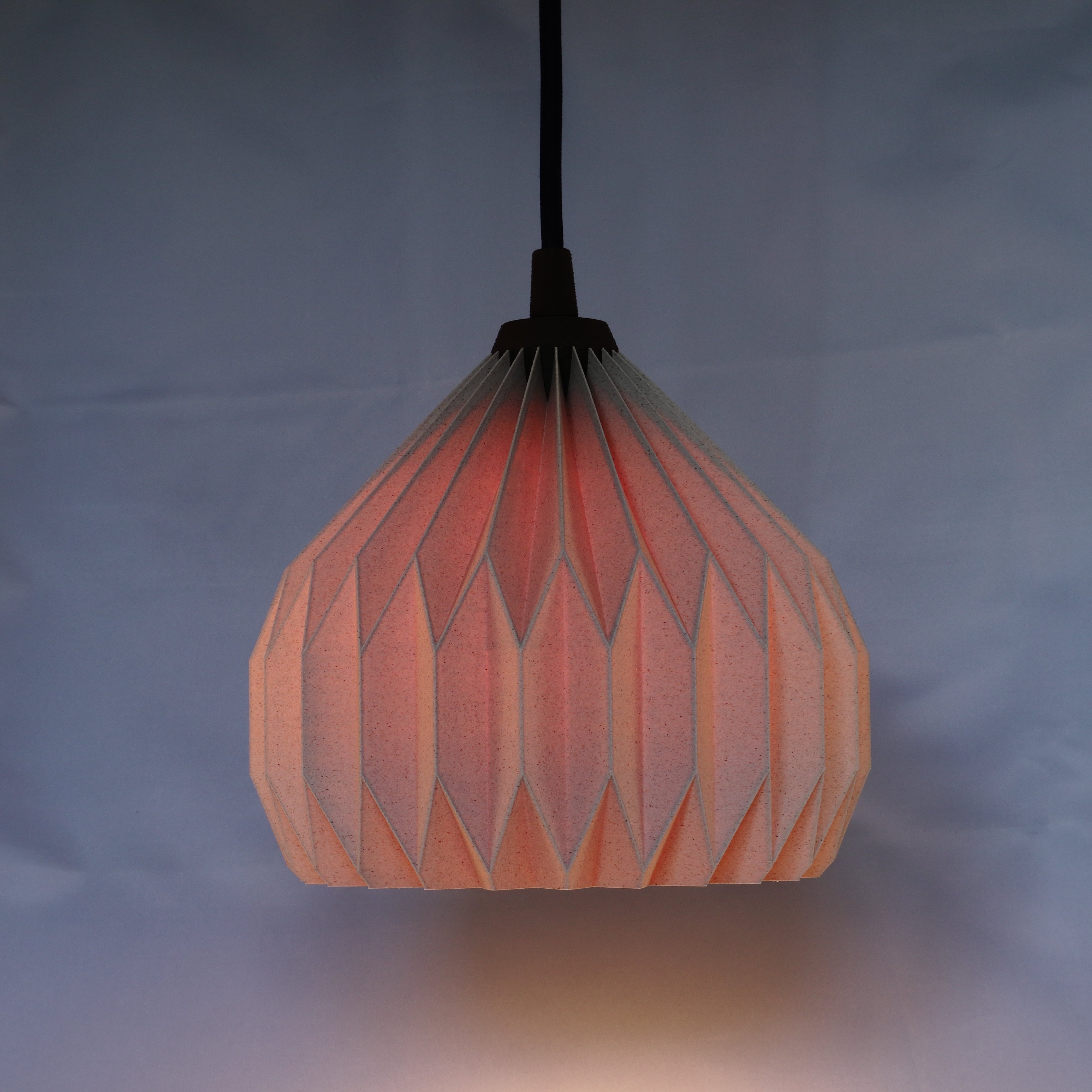 Med sine skarpe folder og rolige geometri fanger den lyset og former det i et blødt, levende mønster.